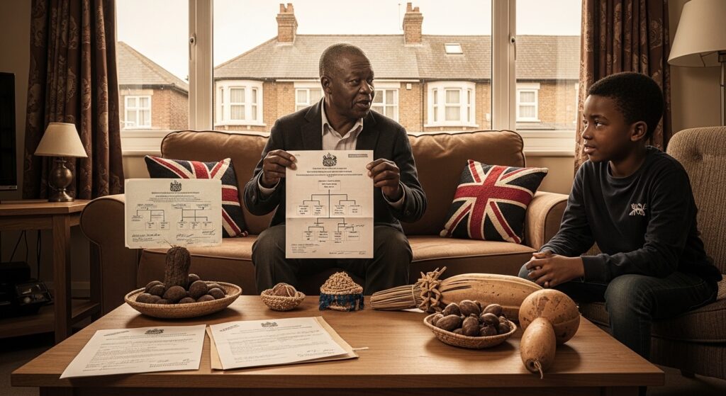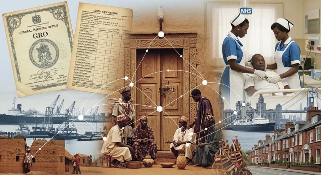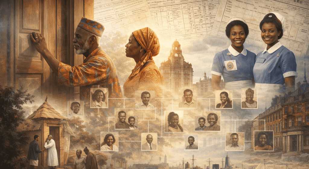 This article explores the migration of Cameroonians to England in the 1960s, a pivotal period marked by African independences and post-colonial dynamics. It aims to analyze the motivations and settlement conditions of this first wave of migrants, highlighting the journeys of the elders of this generation. Particular emphasis will be placed on contemporary challenges in genealogical research within the diaspora, the importance of British civil registers, and the role of Cameroonian cultural traditions, such as the practice of “toqué porte,” in verifying kinship ties and preventing consanguinity. The objective is to provide a rigorous and documented analysis, intended for an institutional, academic, and community audience, to better understand the origins and family trajectories of the Cameroonian diaspora in the United Kingdom.